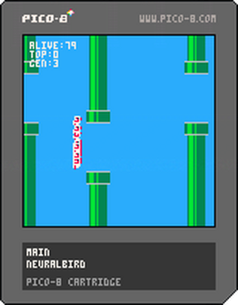 Every generation 100 birds spawn and the top genes are selected to create the next generation with 100 new birds